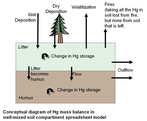 Reed Harris Environmental Ltd., in conjunction with the US Geological Survey, has developed a simple model of mercury inputs and outputs from terrestrial soil systems to provide a screening level assessment of the potential delays imposed by terrestrial systems on the delivery of mercury to freshwaters.